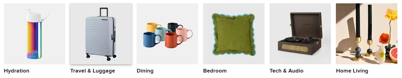 While the home category will offer everything from luggage and dining to audio equipment and home living.
