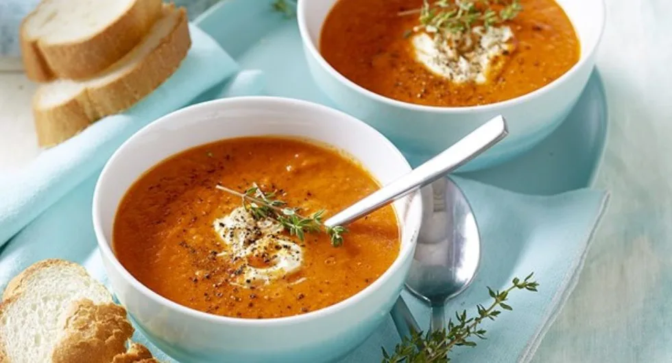 Garnish soup with pepper and thyme. Serve with creme fraiche and crusty bread.