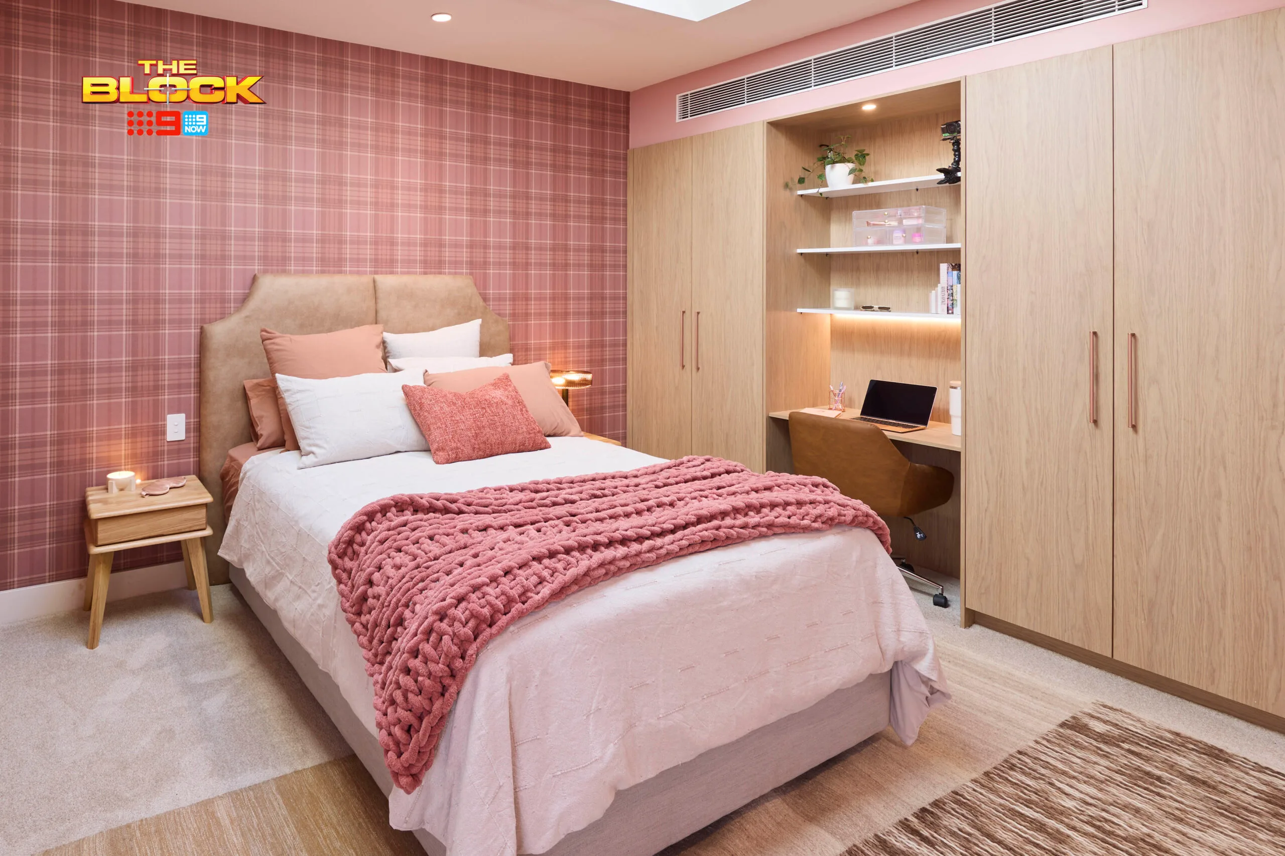 When Darren walked into Britt and Taz’s first bedroom, the first thing he said was “yum”. He loved the colour palette and shapes throughout the room.